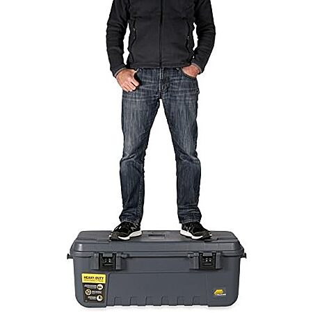 Model: Plano Storage Trunk with Wheels, Gray, Lockable Storage Box, Airline Approved Sportsman Trunk, Hunting Gear and Ammunition Bin, Heavy-Duty Containers for Camping, 108-Quart