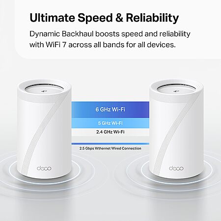 Amazon.com has TP-Link Deco 7 Pro BE63 Tri-Band WiFi 7 BE10000 Whole Home Mesh System - 6-Stream 10 Gbps, 4x2.5G Ports Wired Backhaul, 4X Smart Internal Antennas, VPN, HomeShield, Free Expert Support (3-Pack) on sale for $324. Shipping is free.