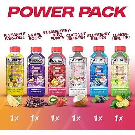[SnS, AC] $7.24 | 6-Pack 21.3-Oz SueroX Sugar-Free Sports Drink for Hydration and Recovery (POWER PACK) at Amazon