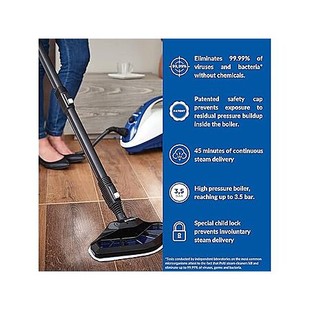- Portable & Convenient: Steam cleaner easily transitions from floor to handheld for "above the floor" surfaces with a carry handle for portability.