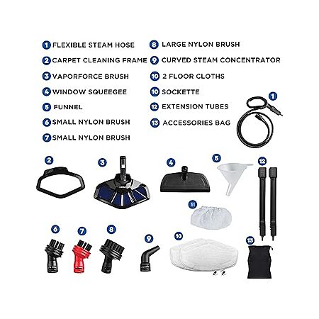- All-in-One Cleaning: Includes 12 attachments for floors, carpets, rugs, windows, and more. 5-channel swivel mop head with integrated brush and microfiber pad for deep cleaning.