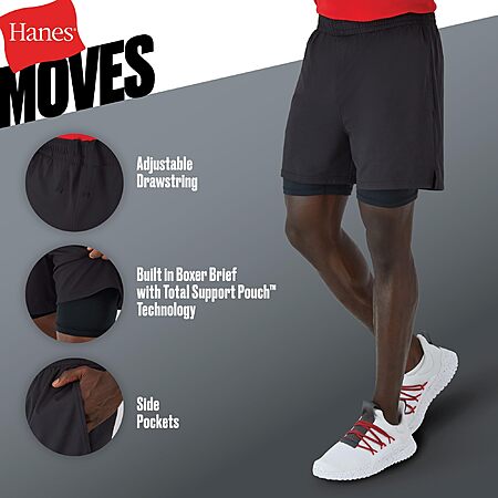 Hanes Men's Moves Workout Shorts w/ Boxer Brief Liner & Total Support Pouch (3 Colors, 5" Inseam) $5.76 + Free Shipping w/ Prime or on $35+