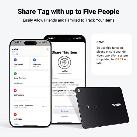Model: UGREEN FineTrack Slim Smart Finder Compatible with Apple Find My (iOS Only), 1.7mm Ultra-Slim Wallet Finder, IP68 Waterproof Rechargeable Bluetooth Tracker Card for Wallet, Key, Luggage Tags