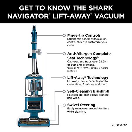 Model: Shark ZU503AMZ Navigator Lift-Away Upright Vacuum with Self-Cleaning Brushroll, HEPA Filter, Swivel Steering, Upholstery Tool & Pet Crevice Tool, Perfect for Pets & Multi-Surface, Teal