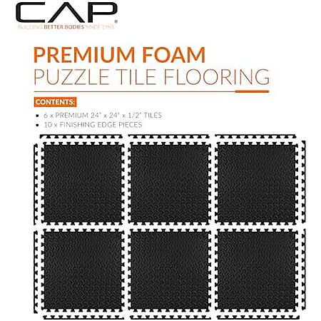 $11.99 | CAP Puzzle Exercise Mats | 1/2โ Thick EVA Interlocking Foam Tiles for Home Gym Flooring, 6 Tiles (24 SQ FT) at Amazon