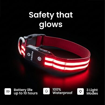 Amazon [amazon.com] has Tractive LED Light Up Waterproof Rechargeable Dog Collar (Small 11"-15.7"; Red) for $4.84. Shipping is free w/ Prime or on $35+.