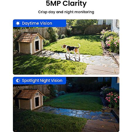 • 5MP/2K+ HD Resolution Solar Camera: Enjoy crystal-clear footage day and night from these solar security cameras. A built-in spotlight enables color night vision for enhanced monitoring.