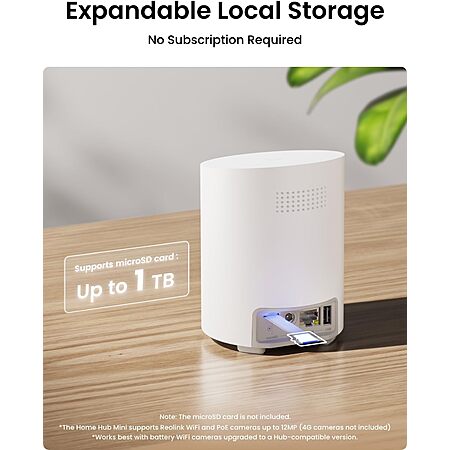 • Local Storage, No Monthly Fees: Centralizes video storage from all connected cameras, expandable up to 1TB microSD. AES128 bank-level encryption keeps footage secure. (microSD card not included)