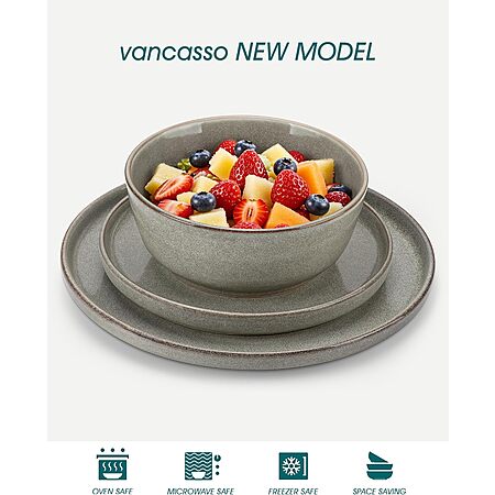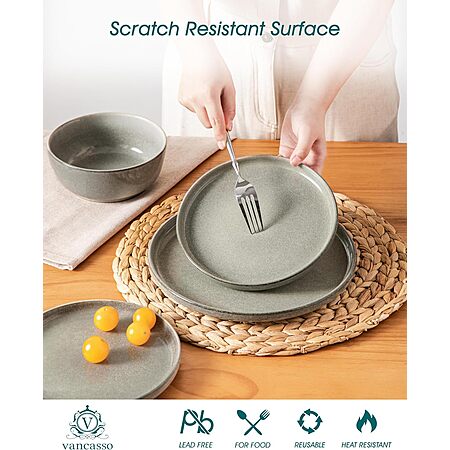 18-Piece vancasso Reactive Glaze Ceramic Plates & Bowls Dinnerware Set (Service for 6, 2 colors) $47.99 & More + Free Shipping