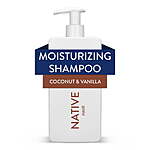| Product Description: | Hydrate and nourish your hair with Native Moisturizing Shampoo. This sulfate-free, dye-free shampoo helps replenish dry, damaged hair so it looks shiny and feels healthy. Free of sulfates, parabens, silicones, and dyes, Native Moisturizing Shampoo gently cleanses and rinses off easily. Thoughtfully made with 11 clean ingredients, this nourishing shampoo includes plant oil-based cleansers and a revitalizing scent you'll want to sniff all day. Native Moisturizing Shampoo is great for all hair types and pairs well with Native Moisturizing Conditioner. Life is complicated enough, your hair care routine doesn't have to be. Like all Native products, this moisturizing shampoo provides a delightful personal care experience. Complete your self-care routine with Native's full range of products including deodorant, body wash, and moisturizing lotion. Hydrates and nourishes. Formulated to replenish moisture, so dry hair looks shiny and healthy with less frizz Free from harsh additives. Sulfate-free, silicone-free, paraben-free and dye-free Complete hair routine. Pairs well with Native Moisturizing Conditioner Thoughtfully made. Formulated with clean ingredients, like plant oil-based conditioners Cruelty-free and vegan. Never tested on animals and no animal-derived ingredients Coconut & Vanilla Scent. A tropical cocktail of coconut, pineapple, citrus, and vanilla notes that smell like a vacay Native Coconut & Vanilla Shampoo 16.5 fl oz |