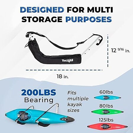 Model: Yes4All Kayak Storage Hooks, Heavy-Duty Premium Foam Padded Surfboard Wallmount Rack, Set of 2 SUP Paddle Board Rack Hold up to 125 Lbs/Canoe, Bike, Kayak Storage Hook Indoor & Outdoor Hangers,Black
