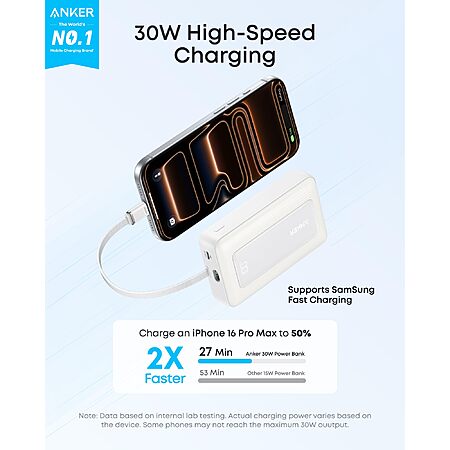 $19.99: Anker Portable Charger, 10,000mAh 30W Power Bank, USB-C in and Out Fast Charging Battery Pack (Black or White)