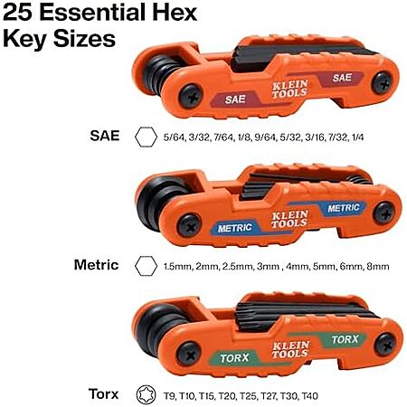 Amazon [amazon.com] has Klein Tools 70543 3-Piece Compact Folding Hex Key Set, Metric, SAE, Torx Sizes, 25 Keys for $19.98.