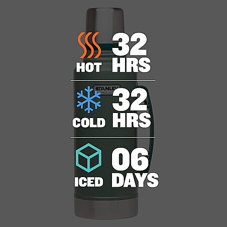 Model: Stanley Heritage Classic Vacuum Bottle with Handle 2.0 qt | Wide Mouth with Leakproof Cup Lid | Keep Drinks Hot or Cold for Travel | Insulated Stainless Steel Thermal Bottle | Hammertone Green