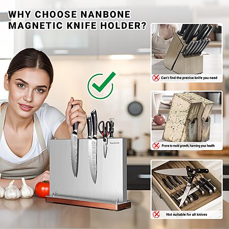 Nanbone-US via Amazon [amazon.com] has 11.81" x 3.14" x 9.0" Nanbone Stainless Steel Magnetic Knife Holder Block on sale for $48.99 - 50% off when you click here [amazon.com] or apply promo code AUXGXXEJ at checkout = $24.49. Shipping is free w/ Prime or on $35+.