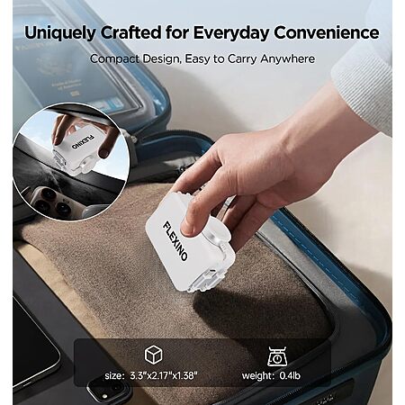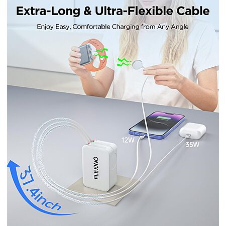 FlexTurtle via Amazon [amazon.com] has Flexino 5-in-1 Retractable Foldable Plug Charger (White) on sale for $34.99 - $7 off when you clip the coupon on the product page - 38% off when you click here [amazon.com] or apply promo code 4BZ5Y524 at checkout = $14.69. Shipping is free w/ Prime or on $35+.