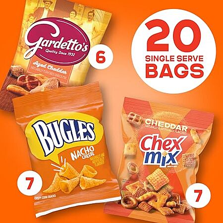 [SnS] $8.10 | 20-Count Cheesy Mix Variety Snack Packs (Gardetto's, Bugles, Chex Mix) at Amazon
