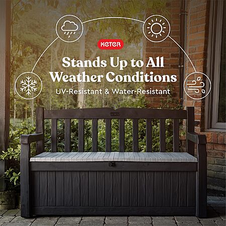 70-Gal Keter Solana Outdoor Patio Storage Bench Deck Box (Gray) for