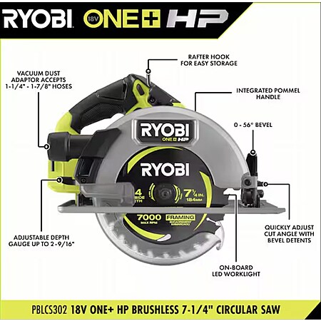 - The most powerful RYOBI circular saw utilizes 18V ONE+ HP Technology delivers more power, runtime, durability, and speed using powerful brushless motors, advanced electronics, and HIGH PERFORMANCE lithium technology