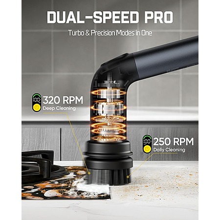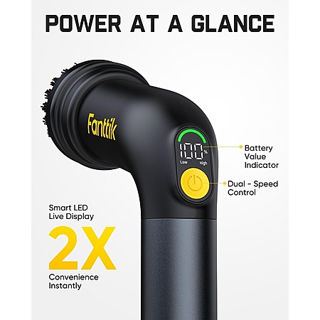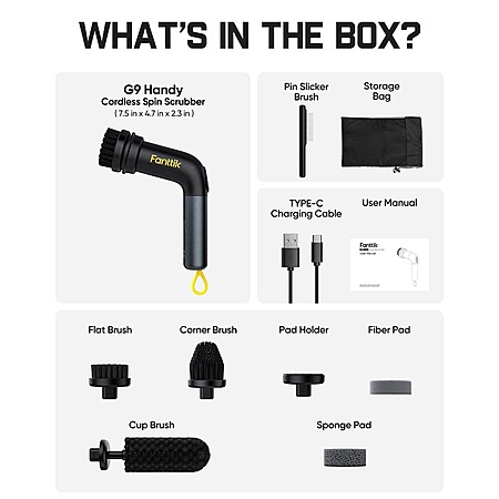Model: Fanttik G9 Handy Cordless Electric Spin Scrubber, MagnaStorm Motor, Dual-Speed, 5 Brush Heads, LED Display, IPX7 Waterproof, 2500mAh with Type-C Charging, for Kitchen, Sink, Tile, Stove