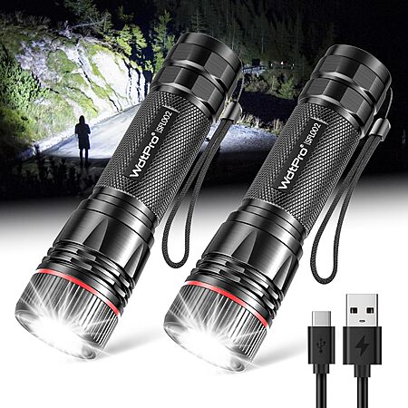 WdtPro Rechargeable Flashlights High Lumens, 2 Pack 10H Long Lasting Super Bright EDC Flashlight $8.79