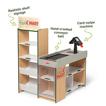 Amazon.com has Melissa & Doug, Fresh Mart Pretend Grocery Store, Kids Cash Register with Scanner, Shelves, & Conveyor Belt, Kids Toys for Girls & Boys on sale for $99.