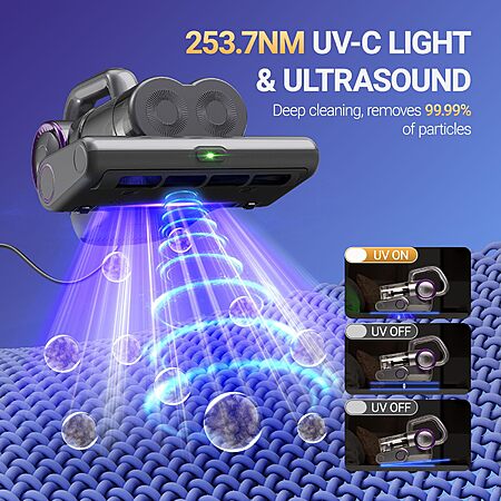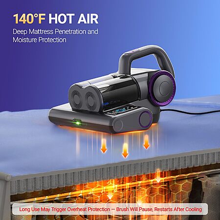 FEPPO Mattress Vacuum Cleaner, 16Kpa Bed Vacuum Cleaner with 253.7nm UV-C Light, 140°F Heat, HEPA Filter & Ultrasonic, Versatile Handheld Vacuums for Bed, Sofa $66.47