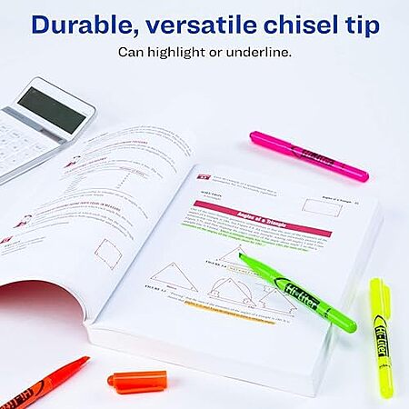 $1.79 | Avery Hi-Liter Pen-Style Highlighters, Smear Safe Ink, Chisel Tip, 4 Assorted Color Highlighters at Amazon