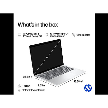 HP OmniBook 5 Laptop 16" 2K OLED, Windows 11 Home, Snapdragon X, 16GB RAM, 512GB SSD, Silver