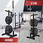 EASY AND EFFICIENT STORAGE FOR BARBELLS AND WEIGHT PLATES: Yes4All Weight Plate Tree Holder contains 6 pegs on both sizes, able to fix for all weight plate 2.5 lbs, 5 lbs, 10 lbs, 25 lbs, 35 lbs at the same time, which fits two inches Olympic weight plates, and two bar holders which fits two inches barbell bar.