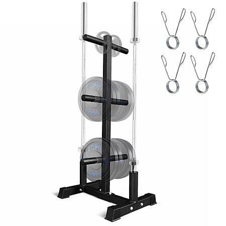 STEEL COLLAR: Weight Plate Tree Holder consists of 4 steel collars which hold the weight plates firmly and securely in right position; And even, ensure stability during use