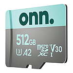 | Product Description: | Take it with you! Is there anything worse than your camera or phone running out of space Don't worry, we've got your back. Our 512 GB MicroSDXC card will expand your camera's storage capabilities, giving you more room for treasured memories, music, media and apps. U3 technology is ideal for HD Photography and 4K Ultra HD Videography, allowing you to capture high quality 4K video and photos with your action camera, drone, or other mobile device. Keep onn. We're onn. to something here. We took the hassle out of buying electronics and built a brand that's fresh and simple. With delightful pops of color, finding the right product has never been easier. Say goodbye to stressful decision-making and fear of the electronics aisle. Our mission is simple to deliver great products and make it easy. Choose onn. and get back to using your brainpower for the important things in life⦠like pondering the question, "What should I binge watch this weekend " onn. 512 GB microSDXC U3 Memory Card with Adapter 91,040 20 MP Photos, 29.5 hours 4K video recording/4K movies Compatible with most smartphones, tablets, drones, cameras, computers, and Nintendo Switch Water, shock, temperature and magnet proof 90 MB/s write speed, 100 MB/s read speed The Uses: smartphones, point and shoot cameras, DSLR cameras, action cameras, video cameras, tablets, laptop computers, desktop computers, Nintendo Switch, and drones |