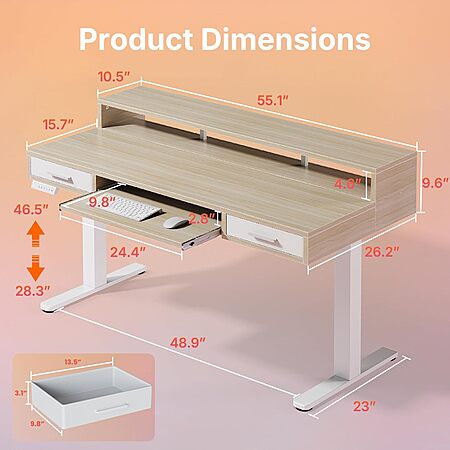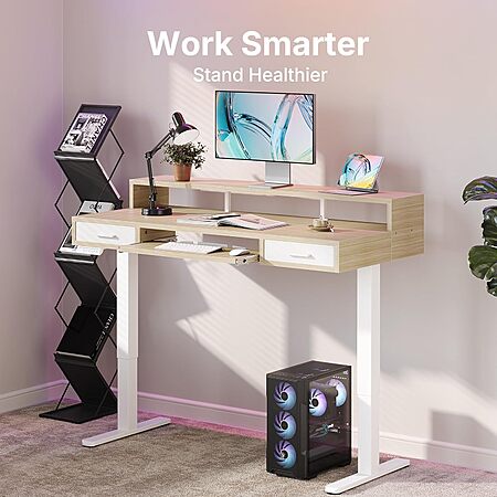 Prime Members: HUANUO 55″ x 26″ Electric Standing Desk with 2 Drawers &24.4″ Large Keyboard Tray, $110