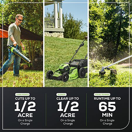 Greenworks 80V 21" Self-Propelled Cordless Lawn Mower + 580CFM Blower + 16" String Trimmer – 4.0Ah Battery & 60-Min Rapid Charger (75+ Compatible Tools) $649.96