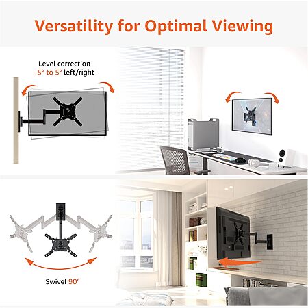 Amazon.com has Amazon Basics Full Motion Articulating TV Wall Mount with Tilt Swivel, Extends 16 inches, VESA 200x200, for 12" to 40" TVs, 40 lbs, Black on sale for $14.42.
