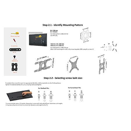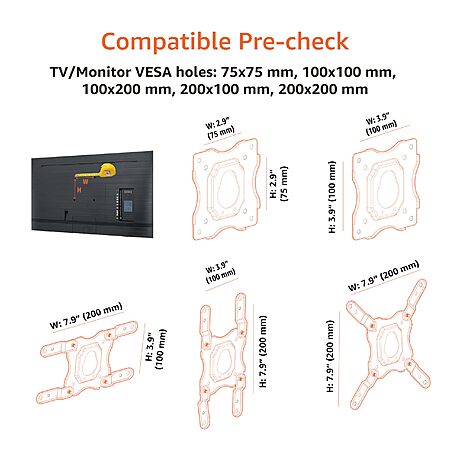 - Designed for VESA sized from 75X75 MM through 200x200 MM.