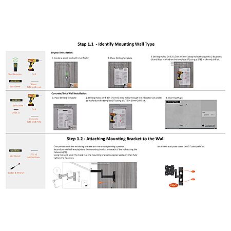 - Designed for concrete, brick and wood studs wall (single stud).