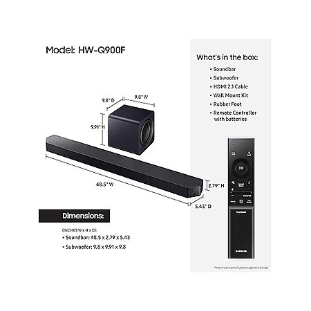 NEW) Samsung HW-Q900F/ZC 7.1.2ch Q-Series Soundbar & Subwoofer - mart Integration, Wireless Dolby Atmos, Q-Symphony (2025) at Woot!