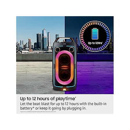 - UP 12 HOURS OF PLAYTIME: Let the beat blast for up to 12 hours with the built-in battery². Keep the music going by plugging in your Sound Tower or swapping.
