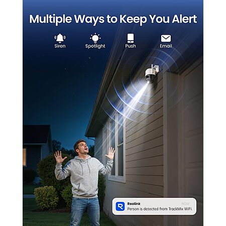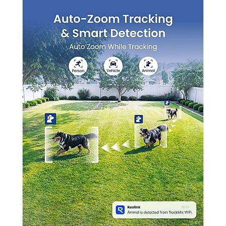 The REOLINK TrackMix WiFi is a versatile 4K (8MP) outdoor security camera featuring a dual-lens setup that provides both wide-angle and zoomed-in views simultaneously. Its 360° pan-tilt-zoom capability and auto-tracking function help follow moving subjects like people, vehicles, or animals. With smart AI detection, color night vision via built-in spotlights, and dual-band WiFi support, it offers flexible monitoring for home security. While performance can depend on WiFi stability and setup, it's a practical all-in-one solution for users needing wide coverage with tracking and zoom features.