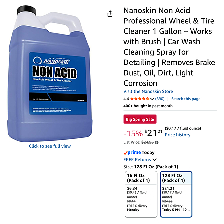 Nanoskin Non Acid Professional Wheel & Tire Cleaner 1 Gallon – Works with Brush | Car Wash Cleaning Spray for Detailing | Removes Brake Dust, Oil, Dirt, Light Corrosion