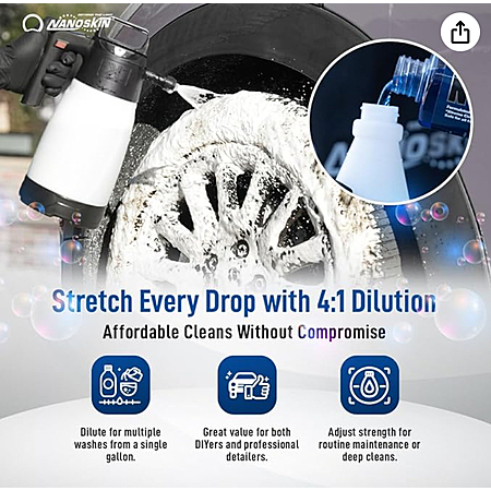 CONCENTRATED PROFESSIONAL WHEEL CLEANER: Highly concentrated wheel and tire cleaner with a 4:1 dilution ratio. Add 6 oz. to a 32 oz. spray bottle or 1 gallon to a 5-gallon tank. Produces thick foam that safely lifts brake dust, oil, dirt, stains, and light corrosion—ideal for auto detailing supplies, car cleaning kits, and professional car detailing workflows.