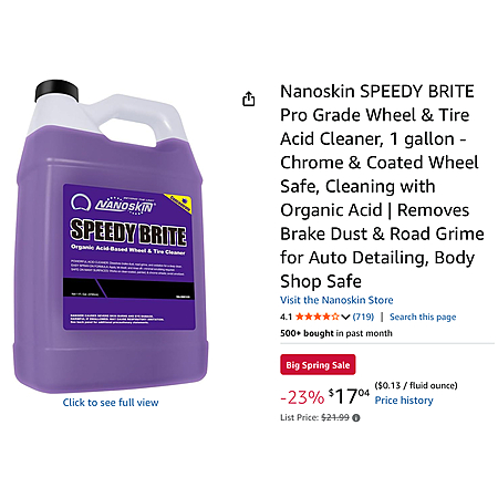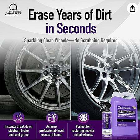 Nanoskin SPEEDY BRITE Pro Grade Wheel & Tire Acid Cleaner, 1 gallon - Chrome & Coated Wheel Safe, Cleaning with Organic Acid | Removes Brake Dust & Road Grime for Auto Detailing, Body Shop Safe