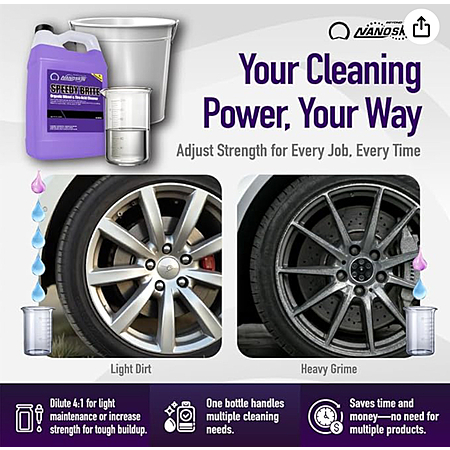 CONCENTRATED: With dilution up to 4 to 1, just add 6 Oz. of Speedy Brite to a 32 Oz. spray bottle or add 1 gallon of the product to a 5 gallon dispensing tank. It provides a brightening power that quickly and effectively removes tough brake dust.