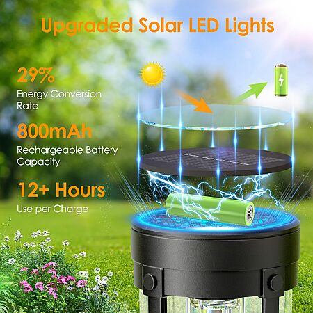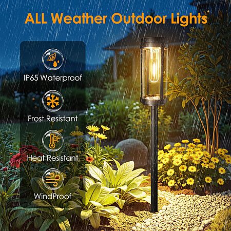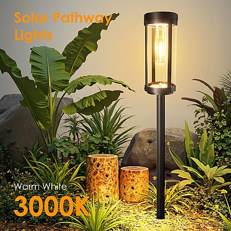 BONLION Solar Pathway Lights Outdoor 6 Pack, Bright & Taller Solar Lights Outdoor Waterproof, Auto On/Off 15Hrs+ $24.99
