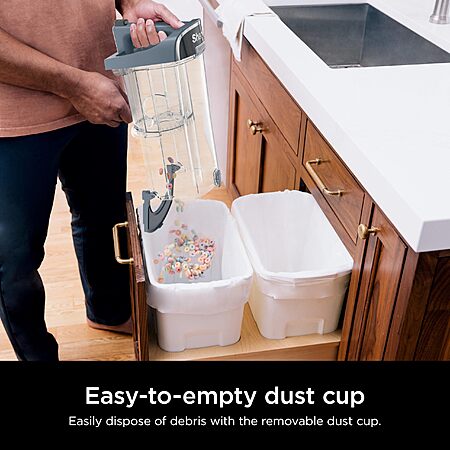- EASY-EMPTY DUST CUP: Removable dust cup is easy to empty and allows you to quickly eject all debris without ever touching the mess.