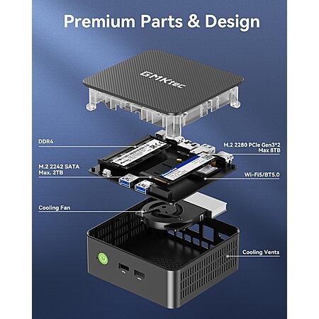 GMKtec Mini PC Computers Intel N95 Processor (Turbo 3.4GHz) 8GB DDR4 256GB SSD Desktop Computer 4K Dual HDMI Display/3x USB3.2/WiFi 5 BT5.0/RJ45 Ethernet Nucbox G3S $219.98