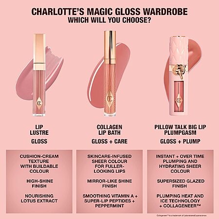Charlotte Tilbury Lip Lustre Hydrating Lip Gloss Pillow Talk Nude Pink Shimmer $19.6
