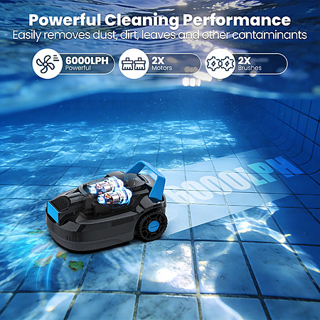 About this item- Powerful Dual-Brush Cleaning: This robotic pool cleaner tackles tough dirt, sand, and leaves with its strong dual-brush system. It delivers a thorough, hands-free clean for both inground and above-ground pool floors