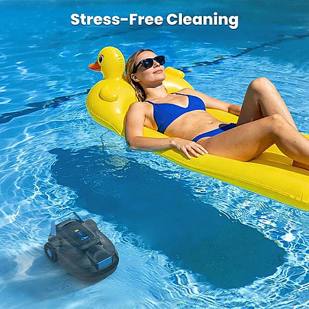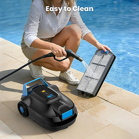 - Tangle-Free Cordless Operation: Enjoy complete freedom without cords or hoses. This cordless robotic pool vacuum moves safely and freely around your pool for a truly hassle-free clean.